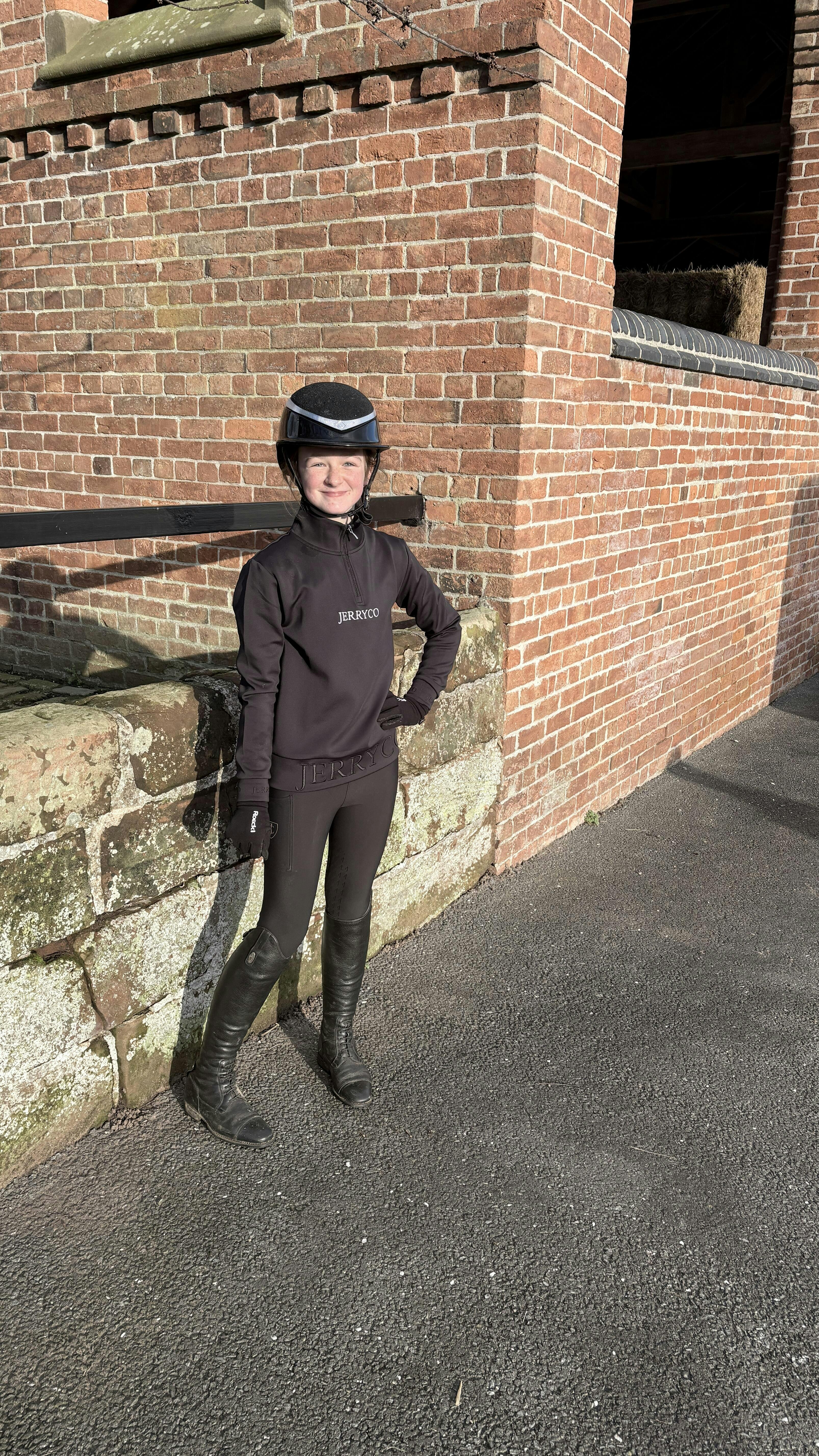 The Jerryco long sleeve base layer is a sleek riding essential crafted from quick-dry 4-way stretch technical performance fabric. Designed for a slim, flattering fit, it delivers freedom of movement, a soft luxurious feel, and a contemporary sport-luxe finish for training, competition, or everyday wear.