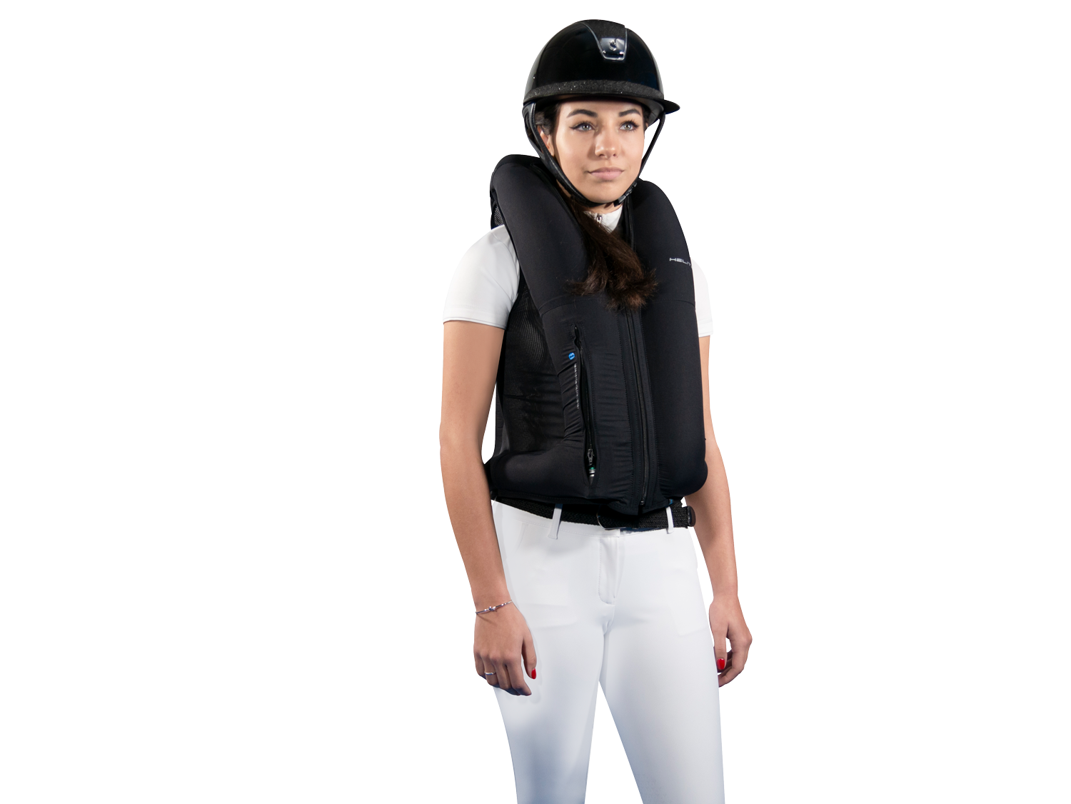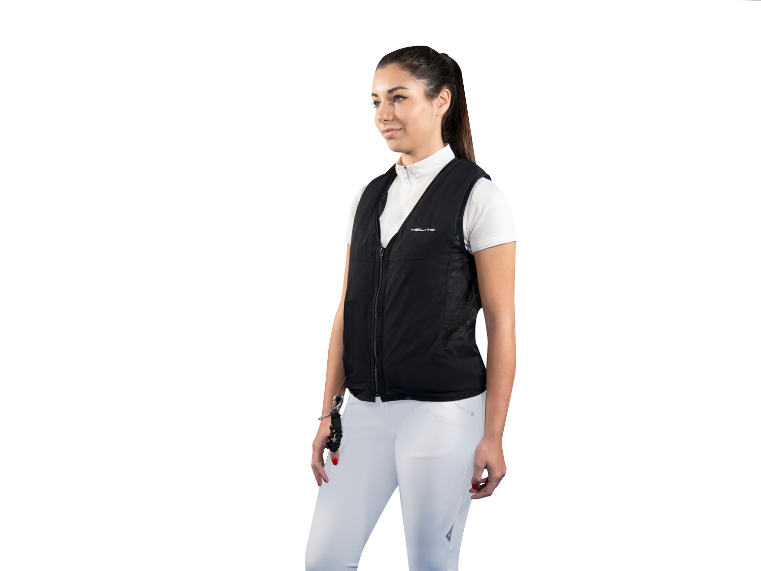 The Helite Zip'In 2 Airbag is designed for riders who want to safety and performance with optimal protection. Lightweight and discreet, it integrates seamlessly into approved Zip'In outer jackets such as the Helite Competition Jacket (sold separately), or can be worn alone. When deployed, it inflates in just 100ms to absorb impact and stabilise the body from head to tailbone, protecting vital areas with cutting-edge equestrian safety technology.